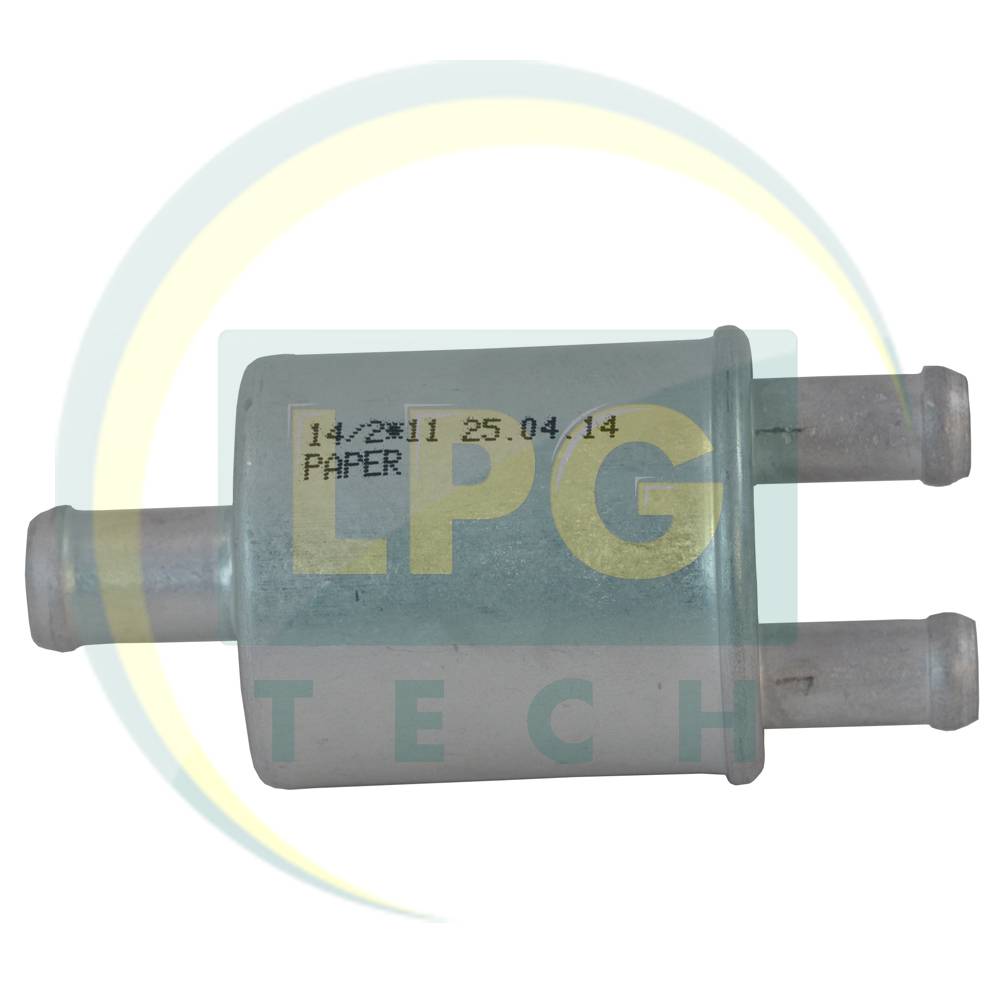 Внутренний фильтрующий элемент сделан из специальной бумаги, которая имеет довольно высокий коэффициент фильтрации. Фильтр паровой фазы оснащен одним штуцером для входа газа и двумя штуцерами для выхода газа. Штуцер входа имеет наружный диаметр 14 мм, а штуцера выхода газа – 11 мм. Это значит, что фильтр используется для систем с одним выходом на редукторе и двумя входами на форсунки. Для них нужны газовые шланги соответственных диаметров. Соединение со шлангами следует зажать червячными хомутами для предотвращения возникновения утечки. Диаметр штуцеров способствует использованию совместно с редукторами: