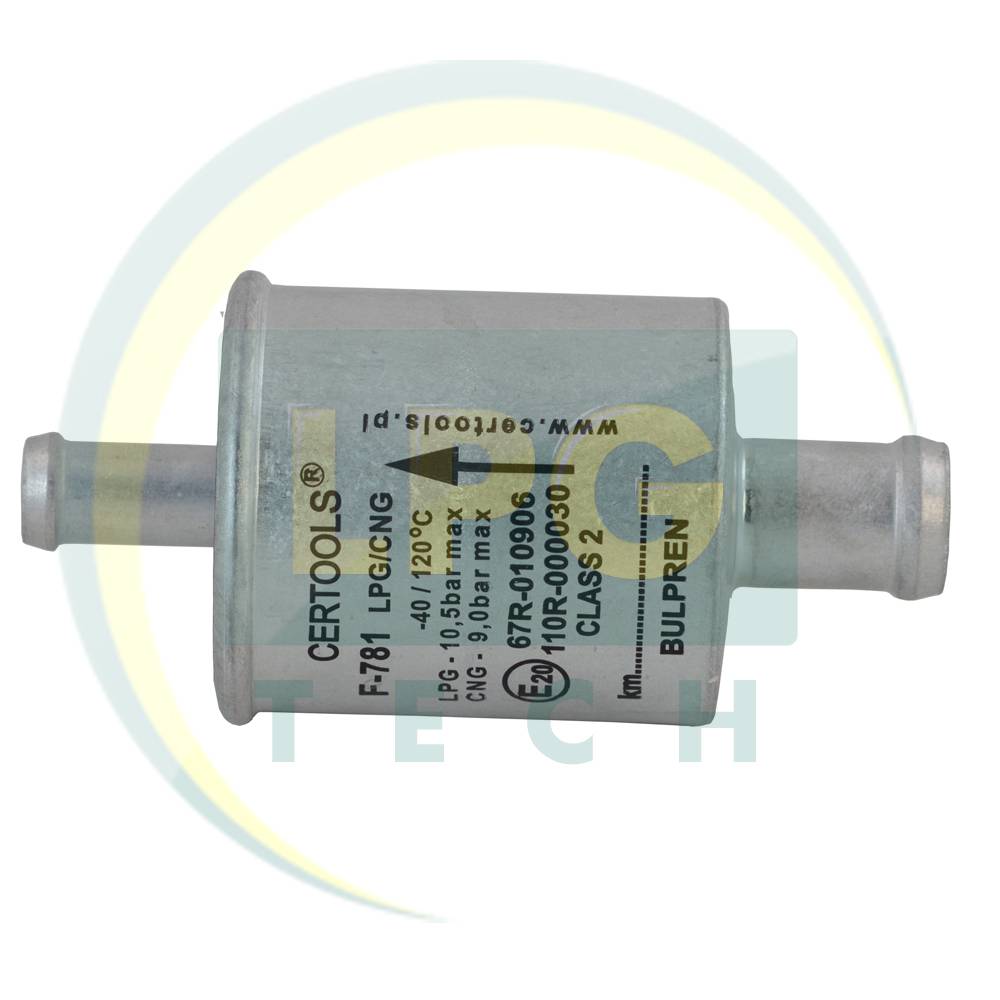 Фильтр паровой фазы Certools F781 – это еще одна модификация известного и популярного фильтра для очистки газа перед рампой иди рампами форсунок. В системе газового оборудования он устанавливается под капотом автотранспортного средства, после редуктора и до газовых форсунок.