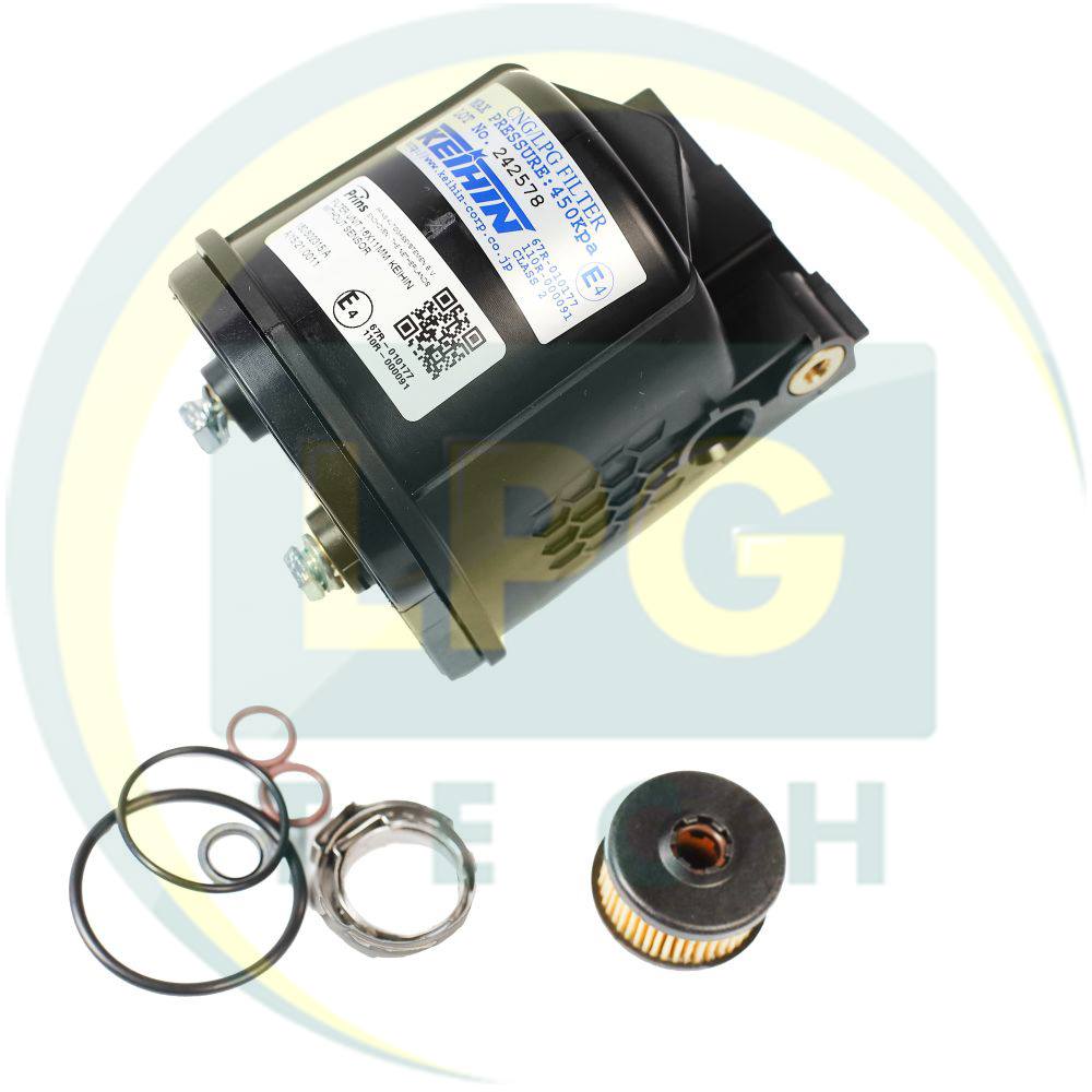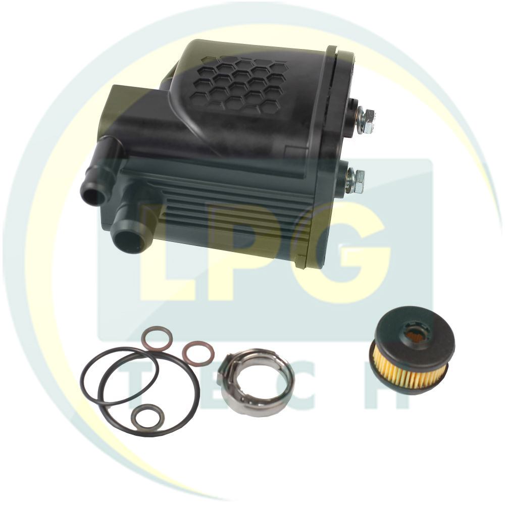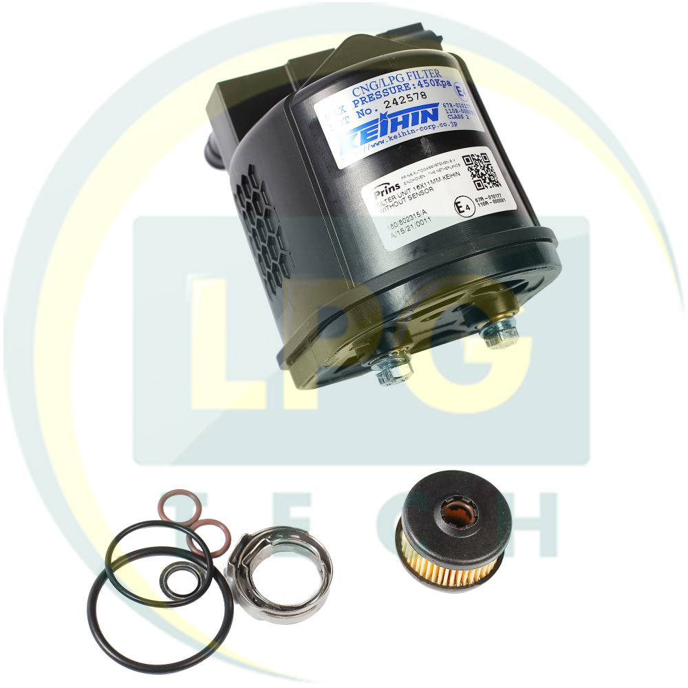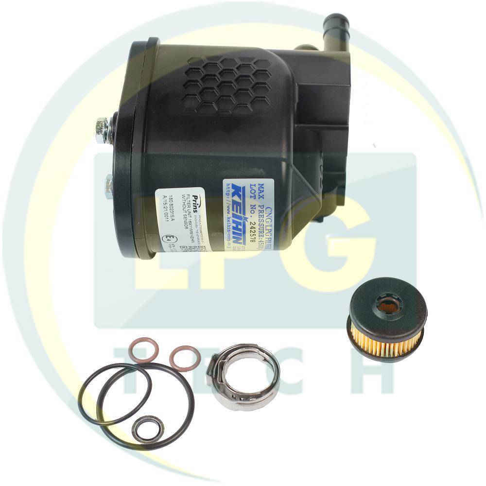 Предусмотрен для очистки газа, поступающего из редуктора на рампу автомобильных форсунок. Обычно входит в миникомплекты производства Prins, однако его можно приобрести и для других ГБО систем. Обладает одним входом газа под рукав с внутренним диаметром 16 мм и одним выходом под рукав с внутренним диаметром 11 мм. Фильтрующий элемент – полиэстровый. Материал корпуса – пластик. Производителем рекомендуется производить замену фильтрующего элемента через каждые 8-10 тысяч км пробега на газовом топливе.