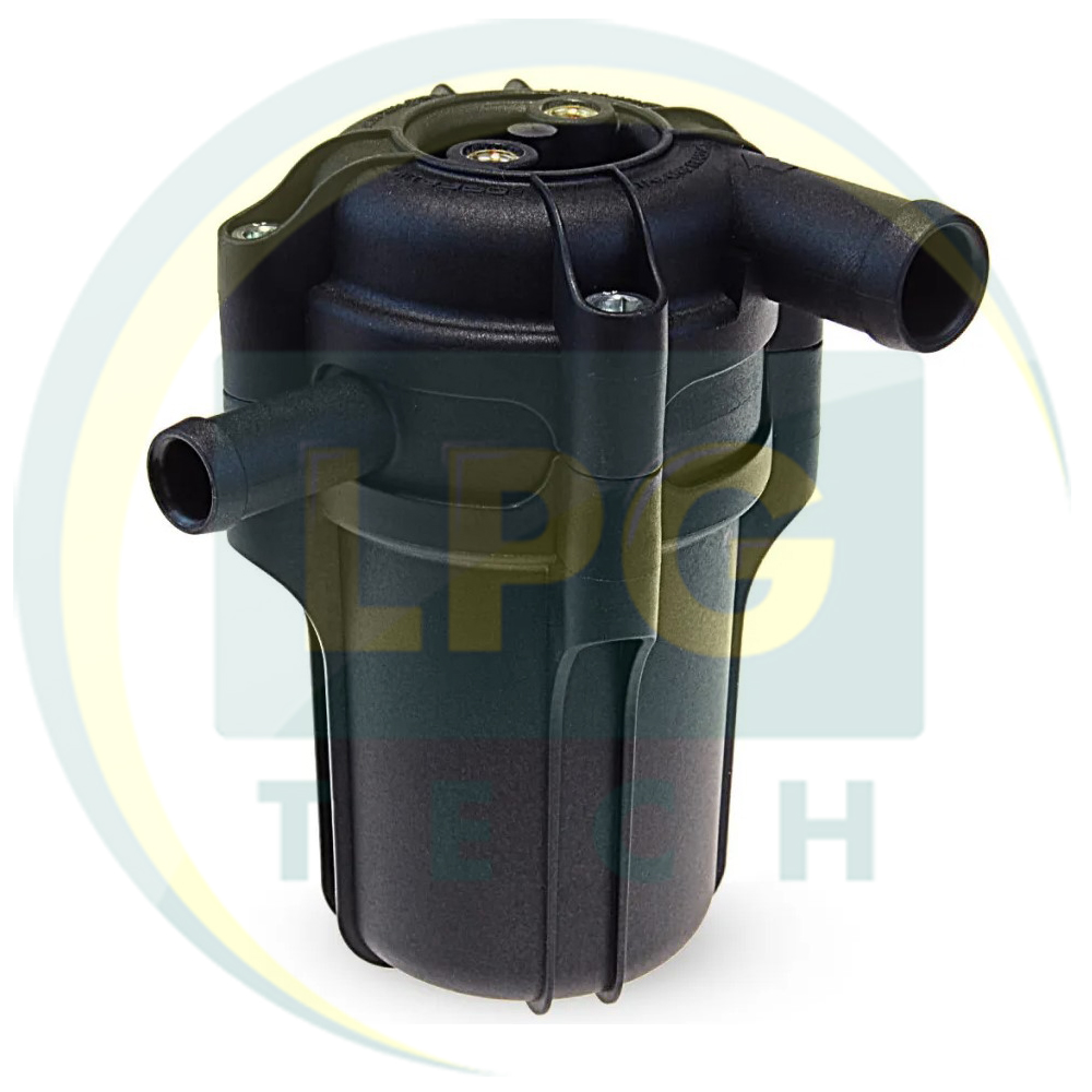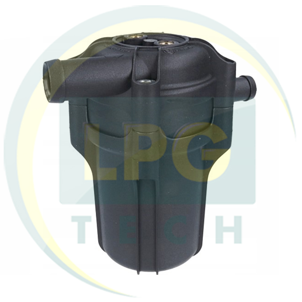 Корпус фильтра выполнен из полимерно-стеклянного сплава, а сам фильтрующий вкладыш сделан из полиэстера. Следует отметить, что замену фильтрующего элемента следует производить через каждые 8-10 тысяч километров пробега для поддержания оптимального качества очистки. Габаритные размеры – 60х60х110 мм. Максимальное рабочее давление составляет 4,5 бар. Диапазон допустимой температуры – от -20 °С до +120 °С. В этой модели вход газа предусмотрен под рукав с внутренним диаметром 16 мм, а выход – под рукав 12 мм.