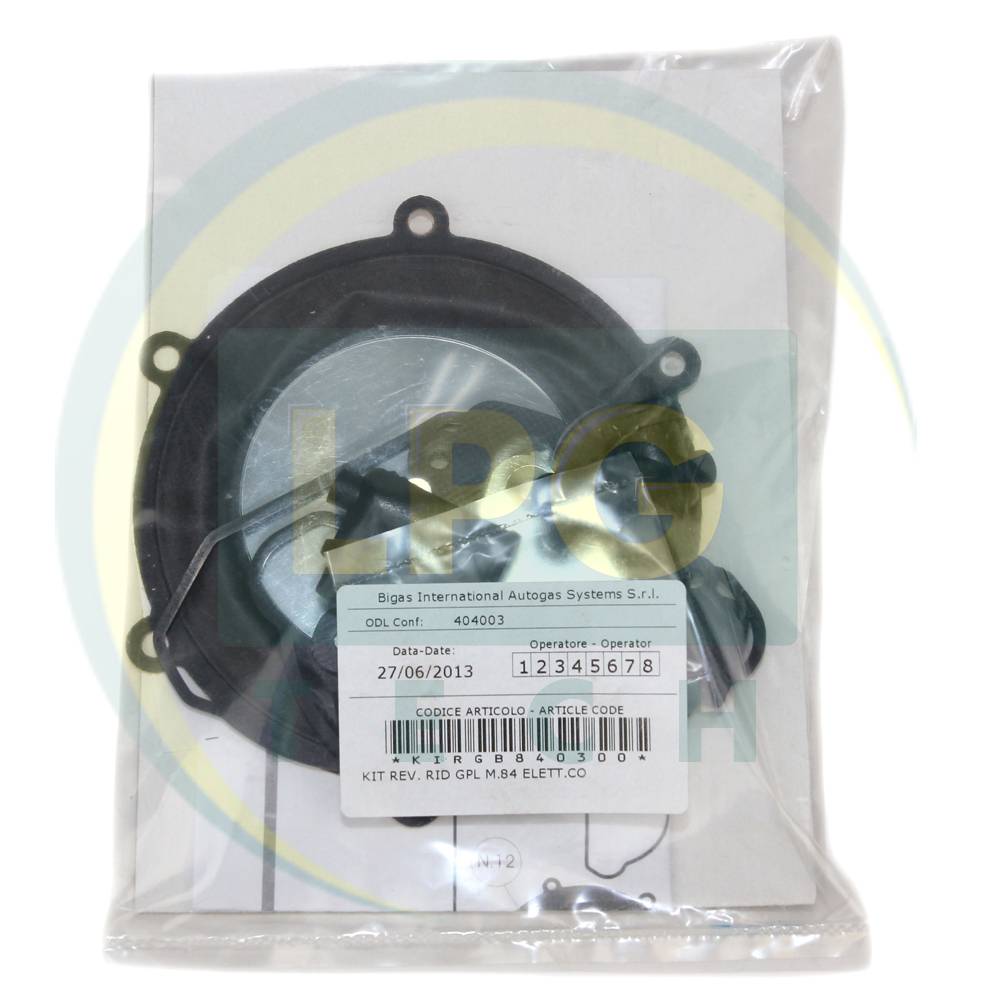 Ремонтный набор М84 произведен в Италии, заводом Bigas Autogas Systems. Код в каталоге заводе – KIRGB840300. Сфера применения устройства – газовое оборудование на пропан-бутане первого, второго или третьего поколения. Имеет довольно высокий ресурс работы, мембраны устойчивы к воздействию масла и бензина, довольно чувствительны к качеству газа.