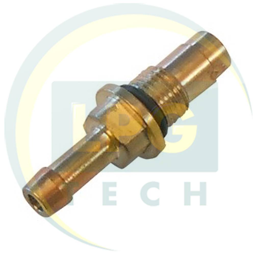 Штуцер выхода газа используется в алюминиевых рампах производства AEB. Сам штуцер также сделан из алюминия, на резьбе соединения с рампой форсунок есть уплотнительная прокладка. Выход газа предусмотрен через газовый шланг с внутренним диаметром 6 мм. Шланги необходимо закреплять хомутами. Максимально допустимое расстояние от форсунок до коллектора составляет 15 см. Внутренний диаметр составляет 2,4 мм. Подойдет для использования в 2-х, 3-х и 4-х цилиндровых рампах.