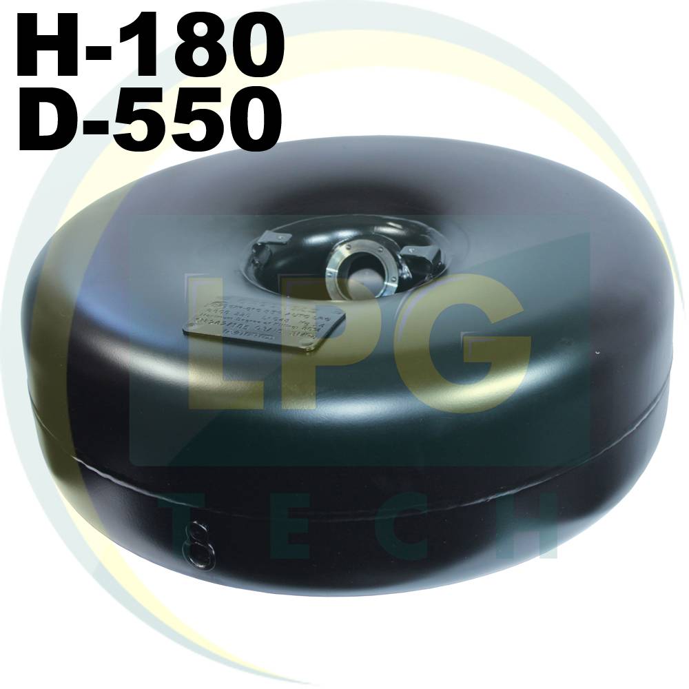 В силу своей формы и благодаря этому удобству в использовании наиболее распространенные стали тороидальные баллоны. Их довольно просто установить на месте штатной запаски, а широкая размерная линейка позволит подобрать емкость под размер уже имеющейся в авто ниши для запаски. Монтируются они исключительно в горизонтальном положении. Изготавливаются из высококачественной легированной стали до 3-х миллиметров толщиной. Рабочее внутри и проверочное давление – 16 и 30 МПа соответственно. Окрашены, как правило, в черный цвет.